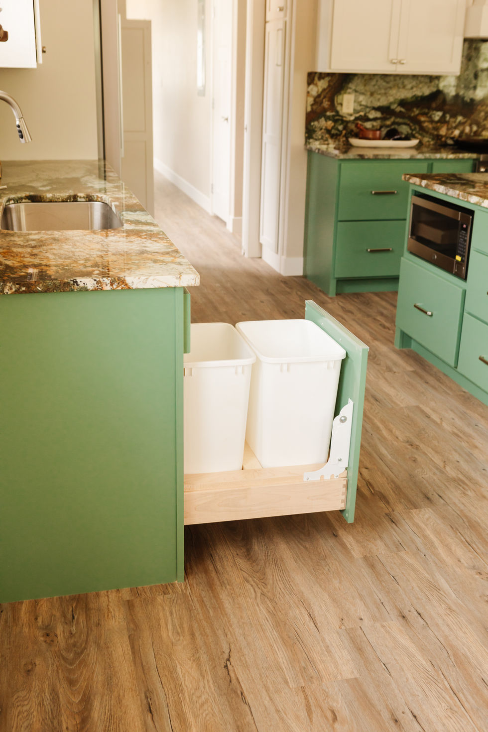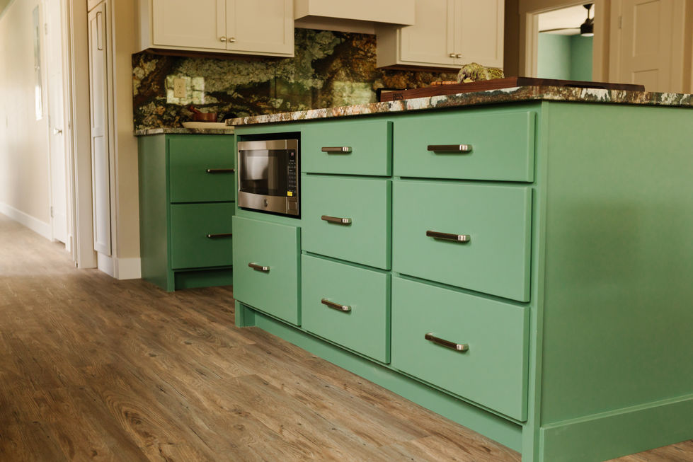 This cabinetry project blends craftsman character with a fresh, modern touch. The mix of green and white cabinetry brings personality and warmth, adding vibrant energy to a home full of color. It’s a playful yet polished design that perfectly balances tradition and modern style.